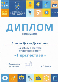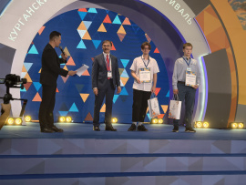 Также состоялась церемония награждения победителей конкурса студенческих работ «Перспектива». Одним из победителей данного конкурса стал студент Курганского промышленного техникума Волков Данил, группа 222. Данил разработал и защитил проект «Эффективность использования солнечных батарей в частном доме».