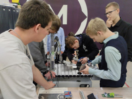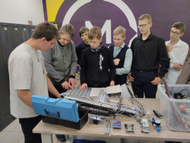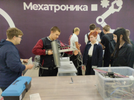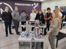 Преподаватель Варлакова М.Л. провела мастер-класс по мехатронике. Ребята в сопровождении студентов третьего курса попробовали своими руками собрать роботизированные станции.