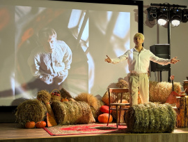 На сцену вышел талантливый артист, наш земляк Руслан Офрин, солист Московского государственного академического детского музыкального театра имени Наталии Сац. Он с невероятной глубиной и проникновенностью представил зрителям рассказ о жизни Есенина. Спектакль погрузил в водоворот событий, которые сформировали поэта: отголоски войн, бурные страсти любви и горечь разлук, взлеты веры и падения разочарований.