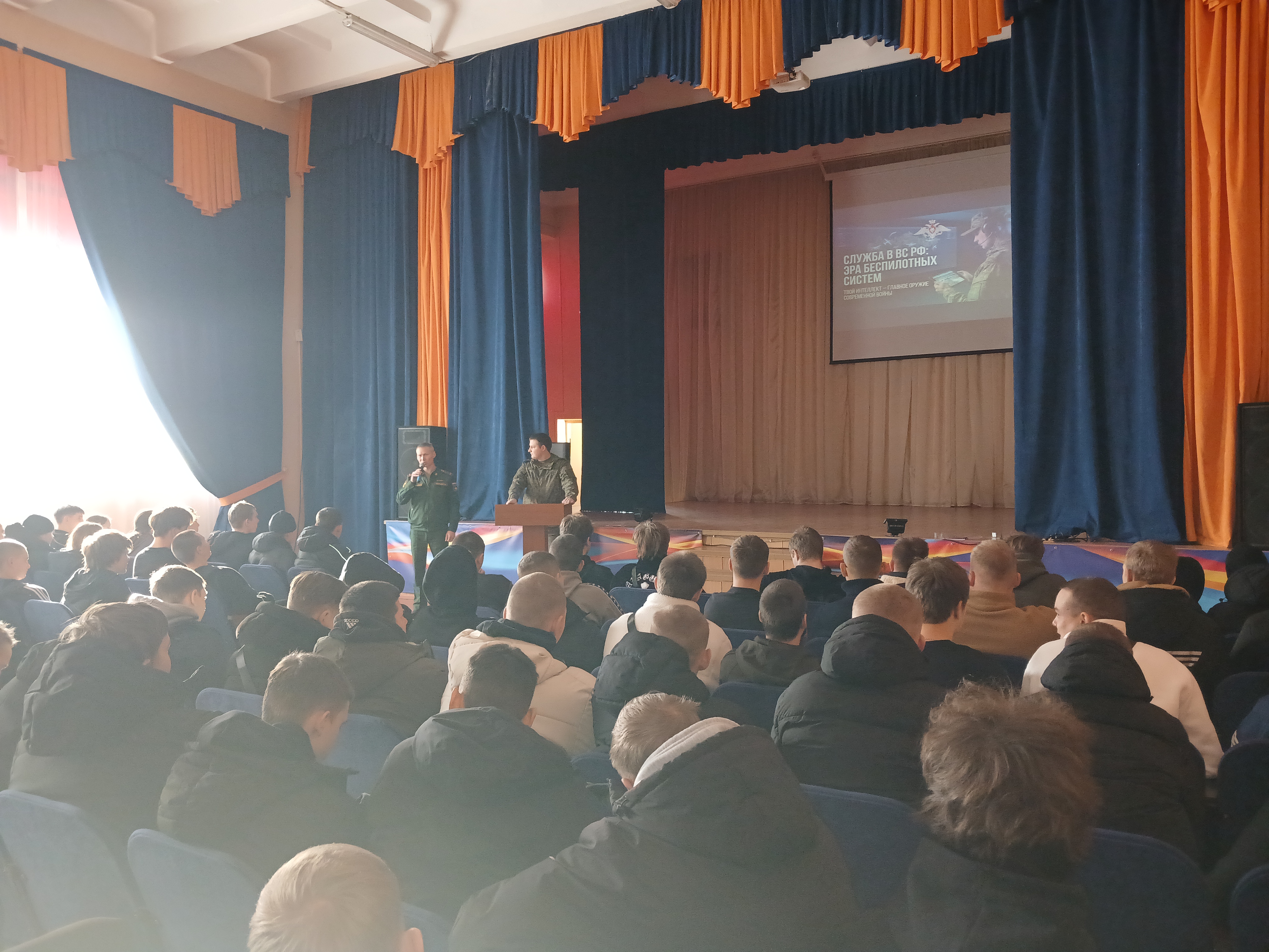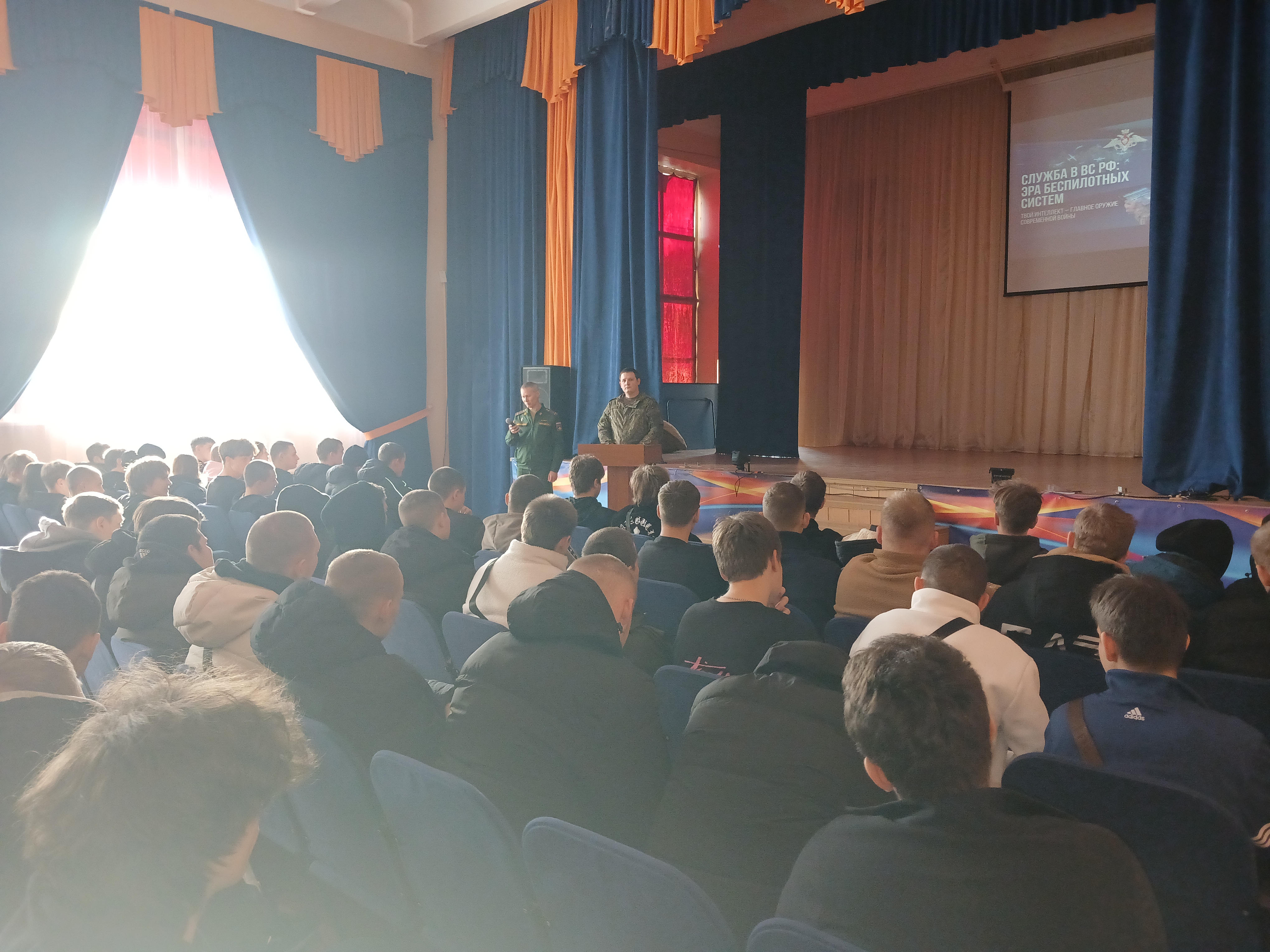 Встреча студентов с агитационной группой, в состав которой входят сотрудники пункта по отбору граждан на военную службу операторами БПЛА