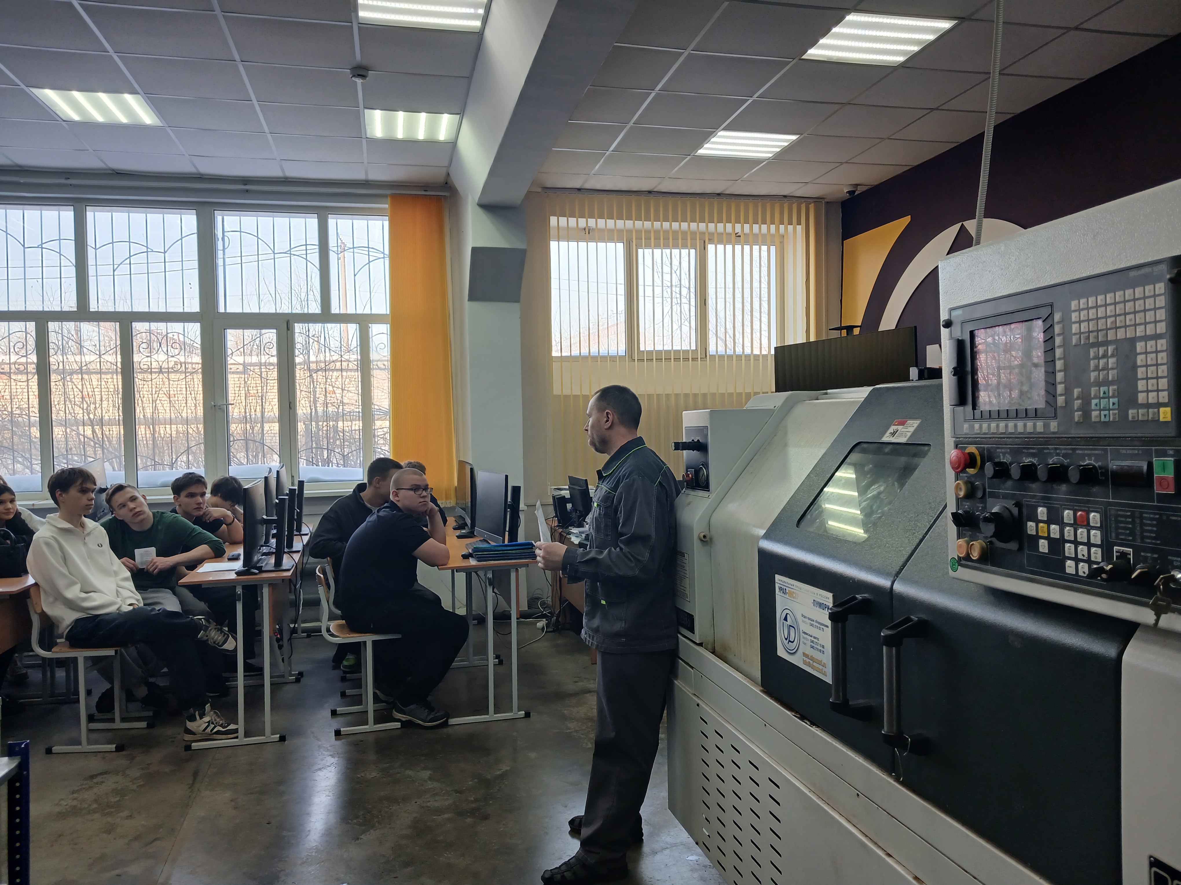Александр Анатольевич Махнин рассказал о работе на станках с ЧПУ. Школьники узнали: