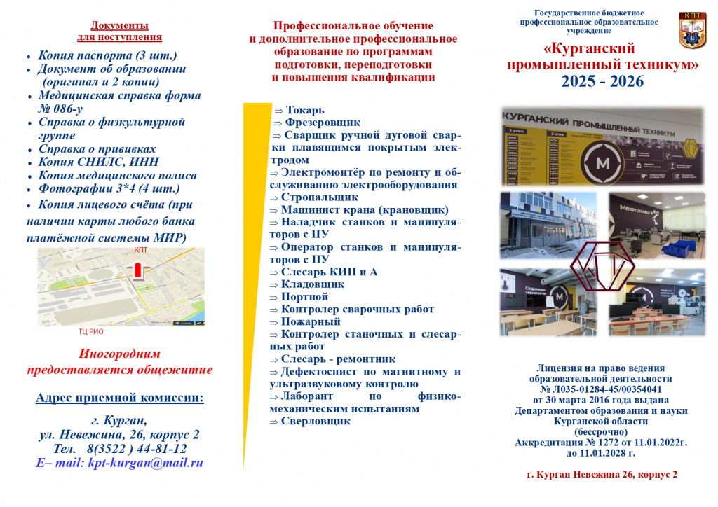 Перечень документов необходимых к предоставлению в приемную комиссию:
